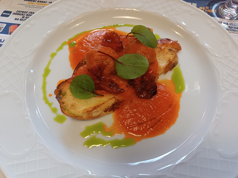 Menu A rozpoczęło się od pulpetów wieprzowych w sosie pomidorowym, podanych na karmelizowanej chałce z dodatkiem pieczonych pomidorków cherry. Przystawka przywodziła na myśl południowe klimaty - była smaczna, aromatyczna i oparta na dobrze znanych, klasycznych smakach. Bez przekombinowania.