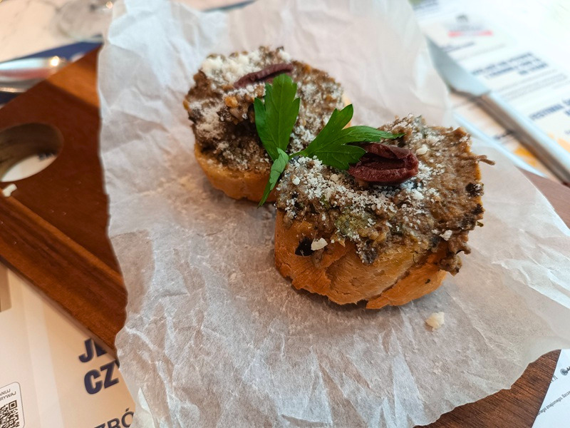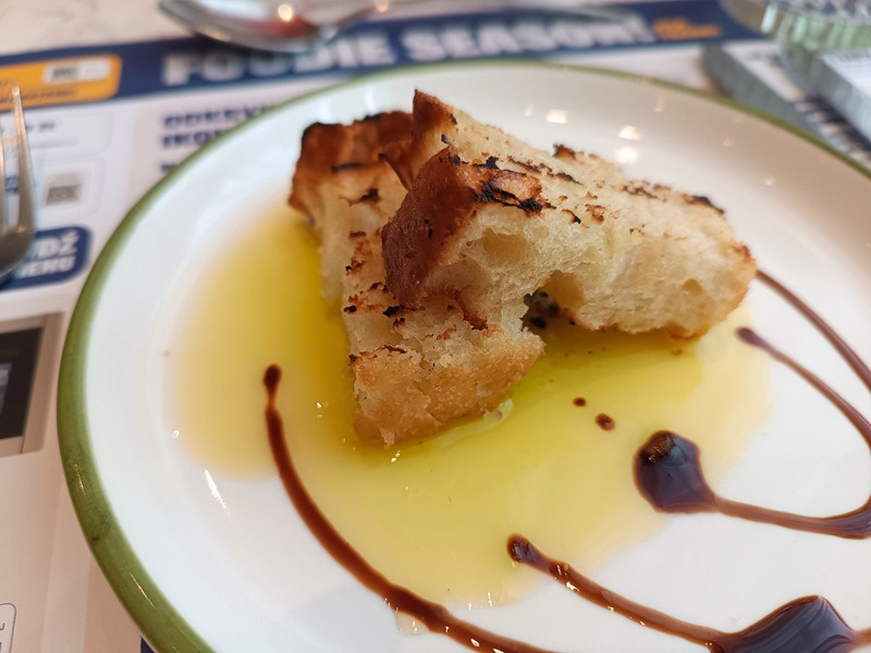Jeszcze zanim mieliśmy okazję skosztować festiwalowego menu, otrzymaliśmy foccacię z oliwą i sosem balsamicznym jako czekadełko. Ten przysmak nie tylko rozbudził nasze kubki smakowe, ale i okazał się pozytywnym zwiastunem dalszej degustacji.