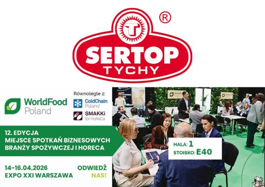 Zapraszamy do odwiedzenia stoiska SERTOP podczas targów WorldFood Poland, które odbędą się w dniach 14-16 kwietnia 2026 roku w EXPO XXI Warszawa (stoisko E40, hala 1).