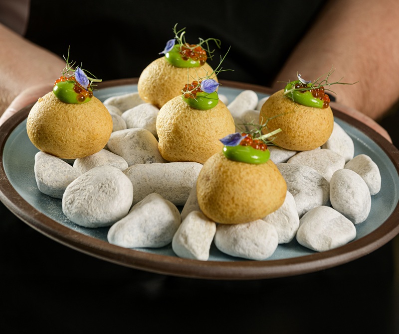 Beignets z krewetką argentyńską, majonez szczypiorkowy, kawior